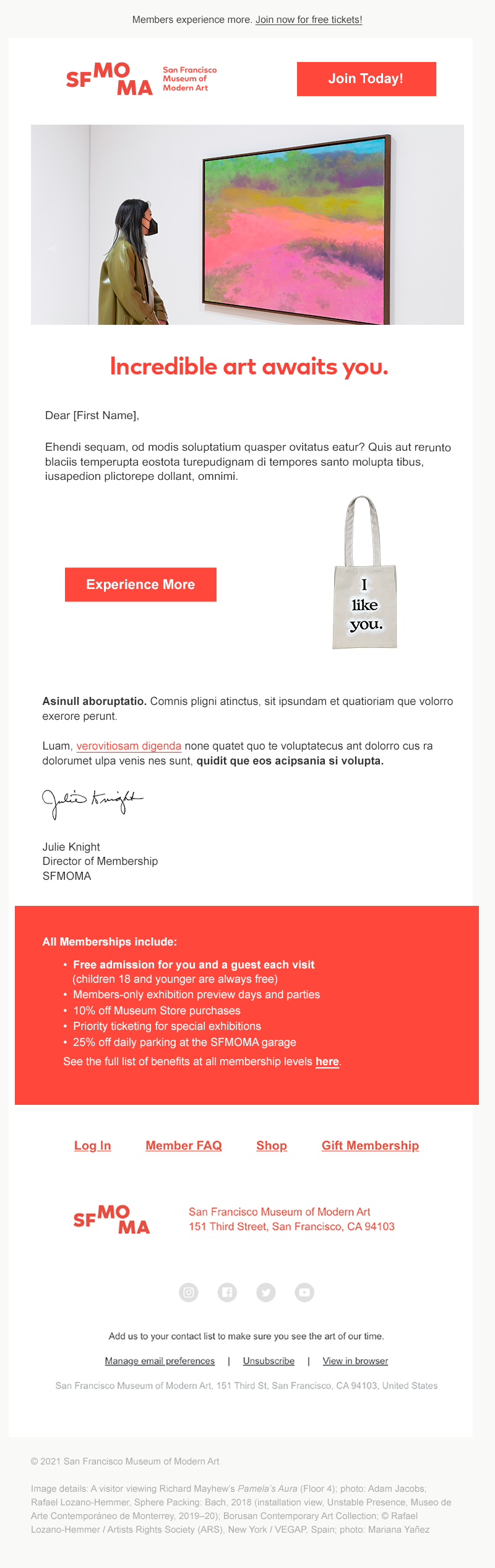 The San Francisco Museum of Modern Art has been a retainer client for years to help them gain and retain members as well as showcase their latest art exhibits.