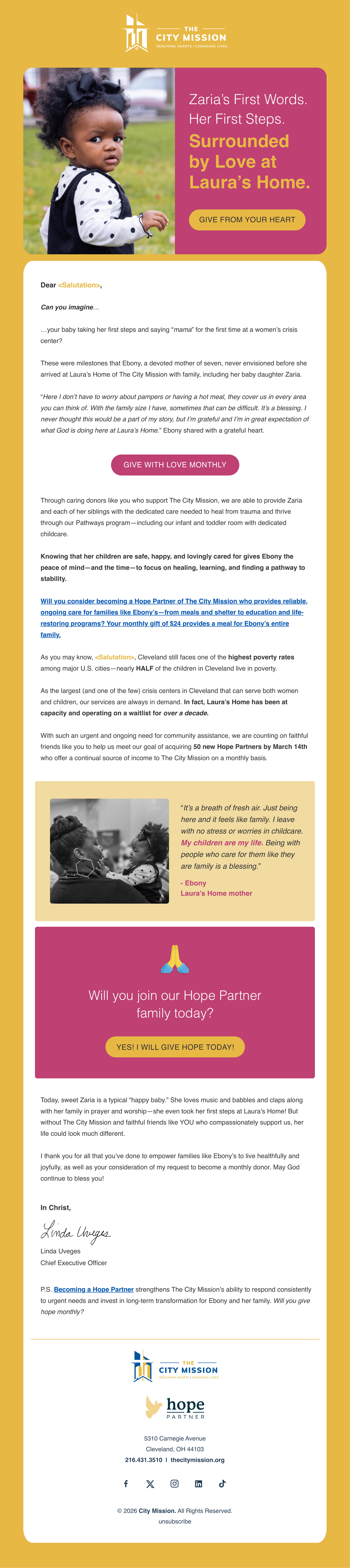 The City Mission is Cleveland's Christ-centered homeless shelter providing help and hope to men, women, and children in crisis since 1910. They are beyond passionate in their mission and put their heart fully into the people who rely on them for the essentials of life.