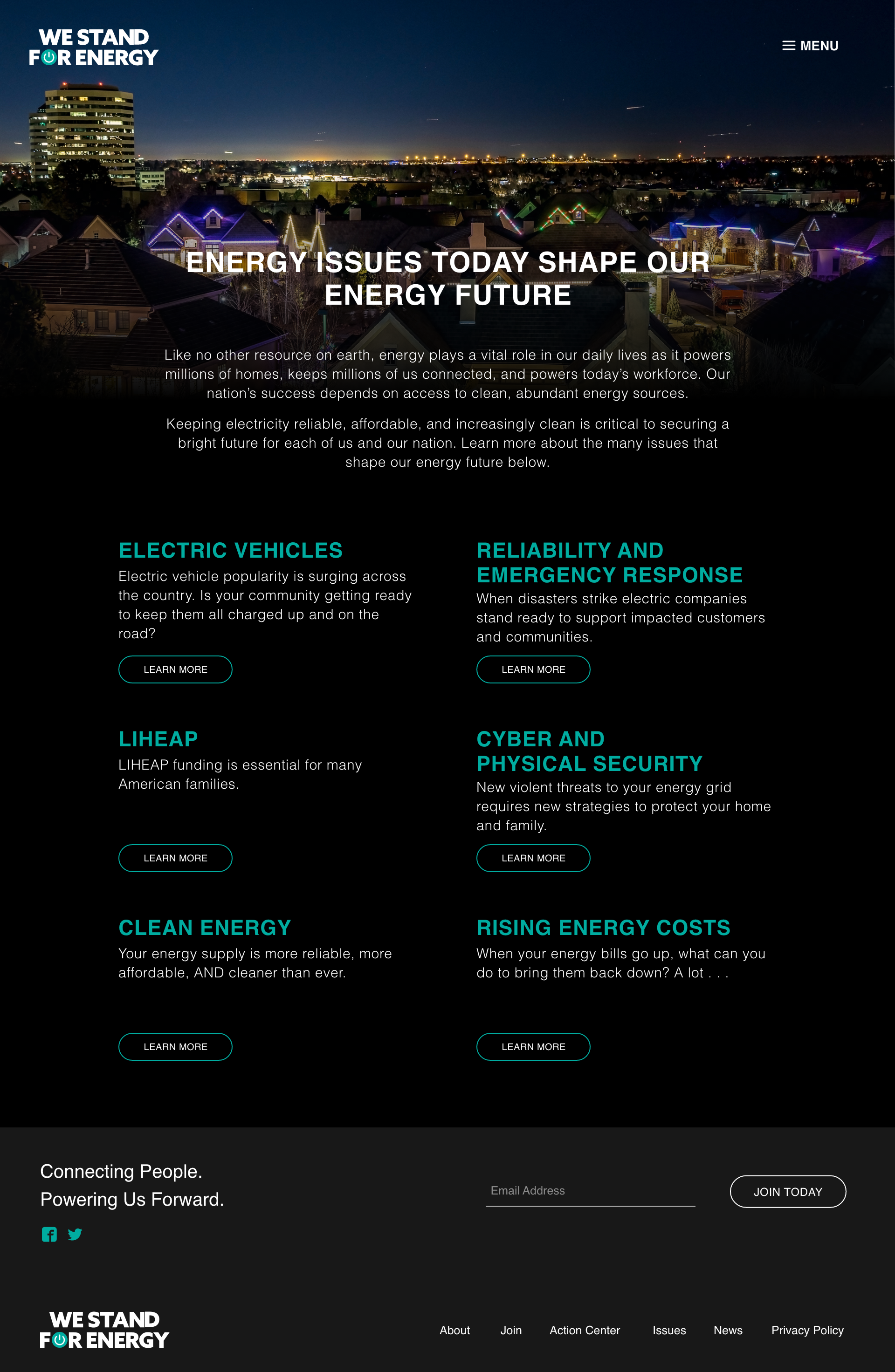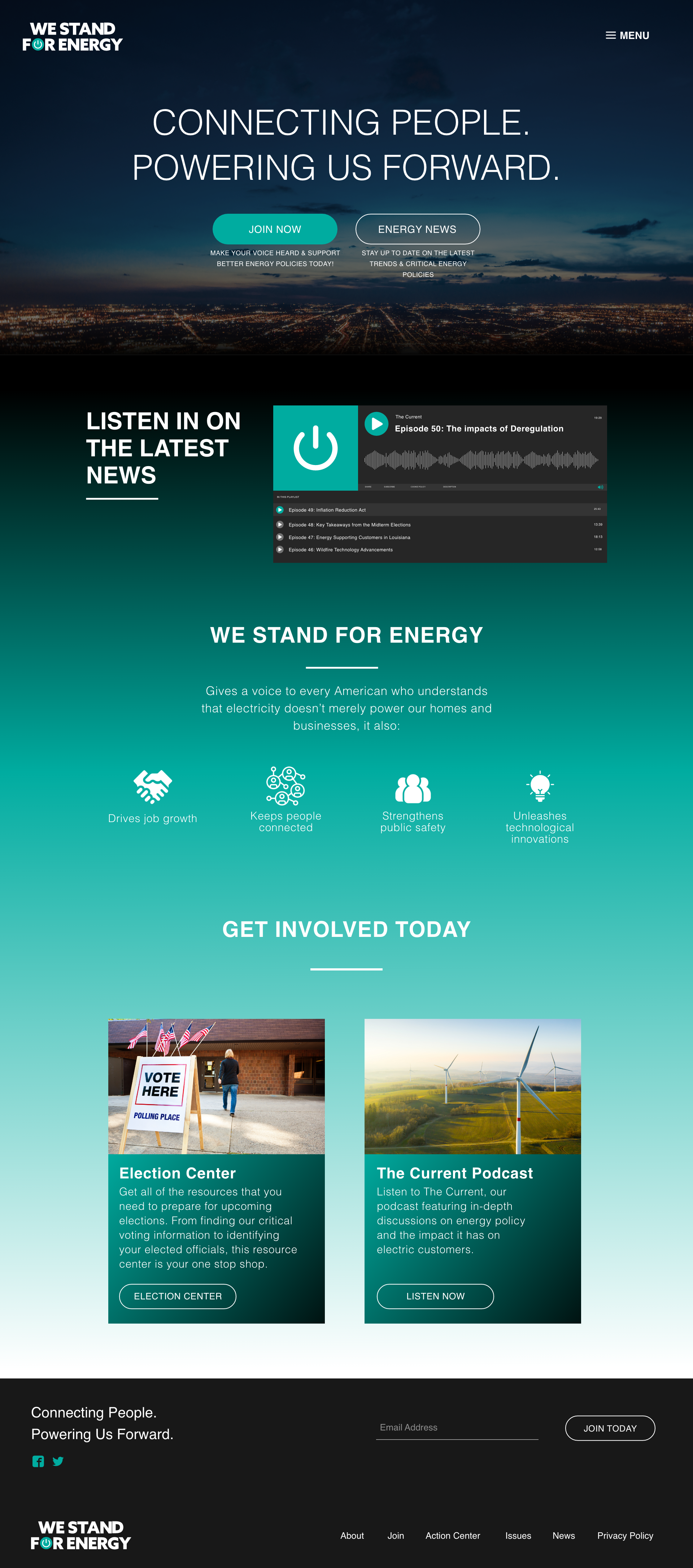 Electricity powers our everyday lives, strengthens our economy, and drives innovation. We Stand For Energy includes Americans from all walks of life working together to support a reliable, affordable, and sustainable energy future for everyone.