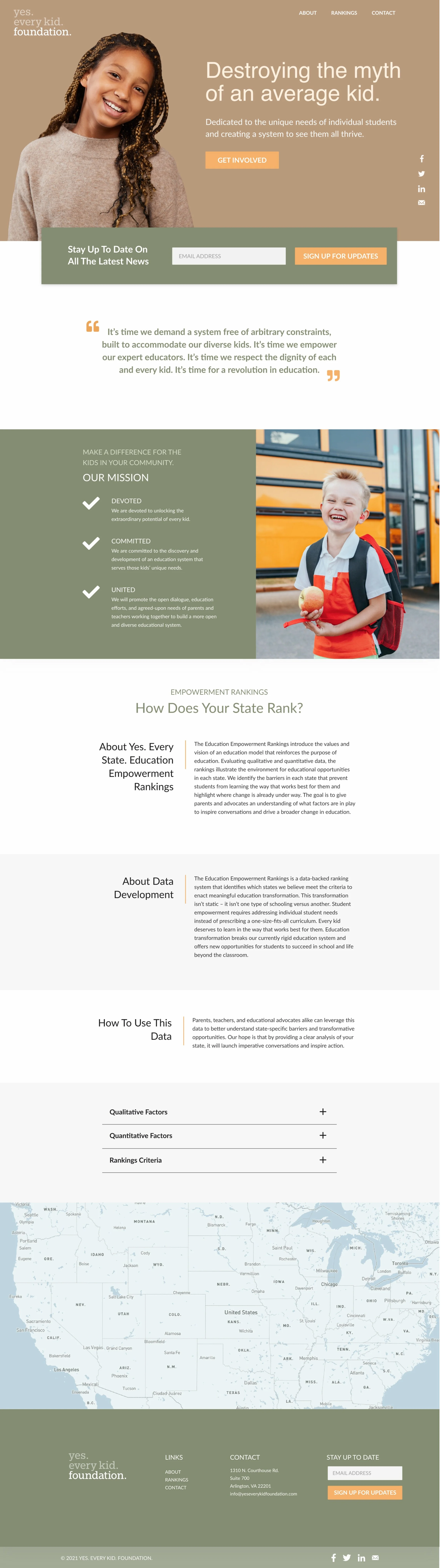 yes. every. kid. foundation. came to me looking for a fresh brand guide and overall design for their website. I was grateful to work with a client that aims to transform education in America with a family-first approach, advocates for better policies for families, and promotes educational entrepreneurs. The homepage design can be seen below to give you a taste of my vision for the client.